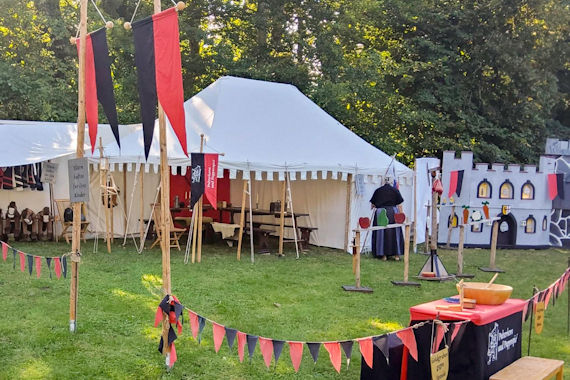 Die Lager der Ritter, Sippen, Reisenden und wilden Horden - hier erleben die Gäste Mittelalter pur und zum anfassen Die verschiedenen Lager zeigen damaliges Sippenleben, Handwerk, Kochen, Fechtkämpfe und vieles mehr.
